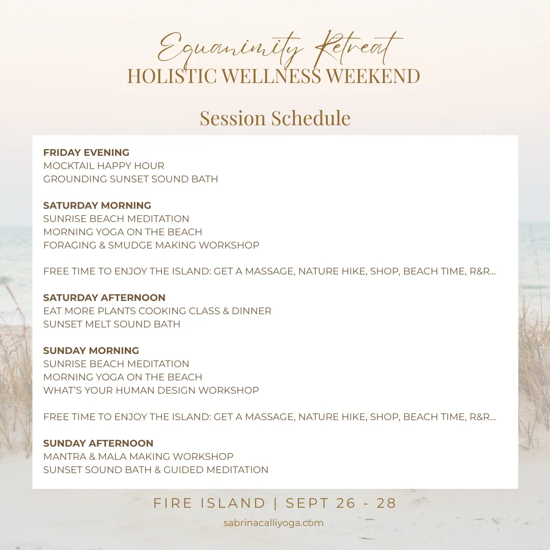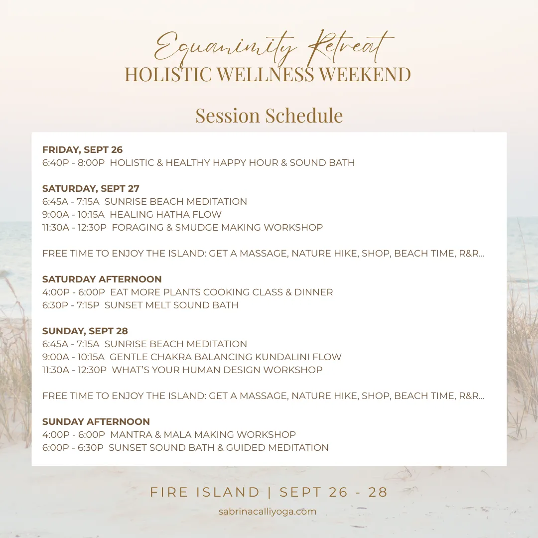 My intention for this Holistic Wellness Weekend is to create a nourishing space where we can honor that balance together. Through movement, breath, meditation, workshops, food, connection and time in nature, we’ll invite both softness and strength, welcoming ease and grace as we step into the next season of our lives.
